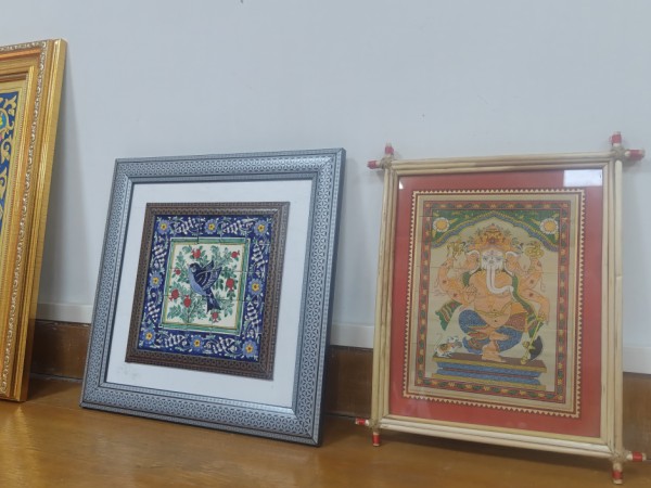 В дополнение к этому мы также получили произведения искусства с религиозной и культурной символикой из Южной Азии. Изображение индуистского божества в рамке, вероятно, из Индии, выделяется яркими цветами и духовным значением. Эти подарки не только отражают разнообразное происхождение наших клиентов, но также подчеркивают уважение и искренность каждого партнерства, которое мы строим.